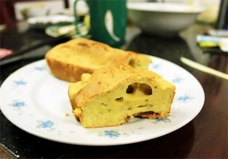 11、倒扣出来切开就可以吃了,很松软,很香哦。