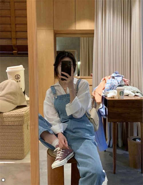 当法式衬衫遇到牛仔背带裤,不娇柔不做作自成一派,日系可爱少女出炉,不需要费太多的心力,这种减龄的造型就呈现出来了,姐妹们可以大胆尝试,尽情释放内心的“烟火”。