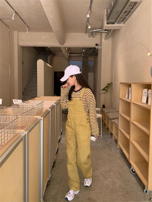 但它与背带裤搭配到一起,呈现的效果反而多了一层独特韵味,将日系风情和可爱相碰撞到一起,呈现的造型清新又复古。