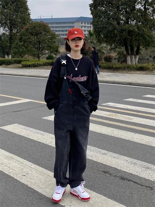 卫衣搭配牛仔裤,卫衣本身不会被任何身材所左右,并且它的包容性极强。牛仔背带裤的版型选择也非常的多样化,可以根据自己的爱好选择版型,阔腿宽松代表着潇洒不羁,紧身的款式更显腿部修长,但无论你怎么选择,它带来的“叛逆感”和自由的气息都是按奈不住的。