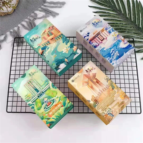 湖大西点推出全新月饼礼盒,精美的橙色礼盒内有莲蓉蛋黄、豆沙蛋黄、黑芝麻、金沙奶黄四种口味的月饼。月饼盒上寥寥数笔勾勒出湖南大学校牌、大礼堂、校办公楼和岳麓书院的建筑图像。古色古香的简笔画是独属于湖大人的默契与浪漫。