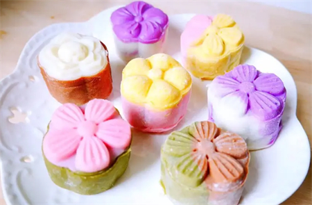 冰皮月饼这种特色月饼是从香港传入大陆的,这种月饼颜值高,外表看着晶莹剔透,色泽洁白或五彩缤纷,非常的诱人,馅料是清甜的果酱馅料,吃到嘴中口感冰凉清爽,外皮质感Q弹,软糯香甜,深受女孩子们的喜爱。