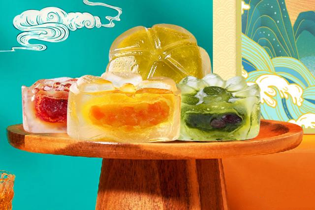 这是一款精心设计的,美貌与美味皆具的水果月饼,采用高端食材,奇妙融合而成,像果冻一样透明的饼皮中,包裹着新鲜的水果,有芒果、草莓、抹茶红豆、卡曼橘4种口味,每一种都会让你过口不忘。