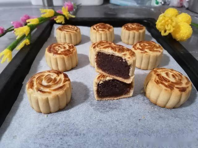 豆沙月饼就做好了,松软可口,甜而不腻,非常的简单,大家动手做起来吧!