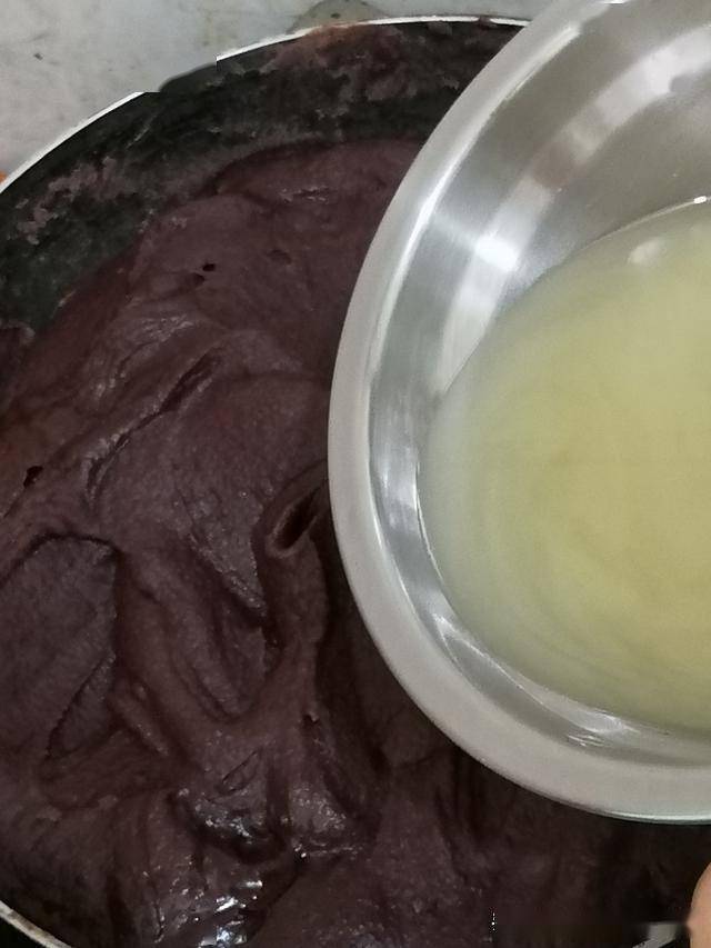 二、倒入碱水2克(碱与水的比例为1:3)搅匀