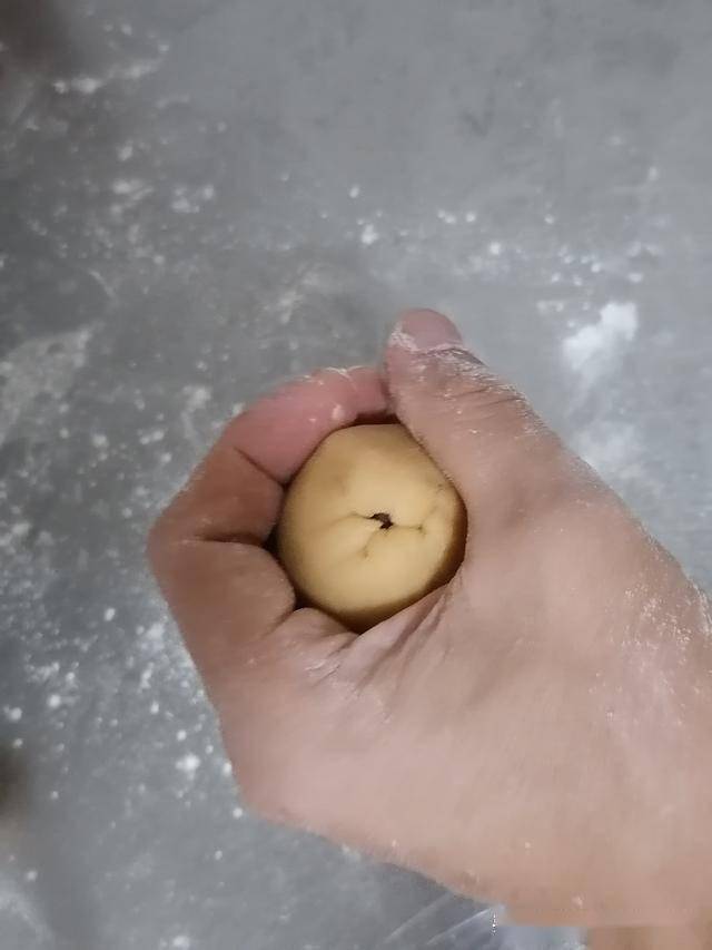 十、搓圆,表面撒少许熟面粉