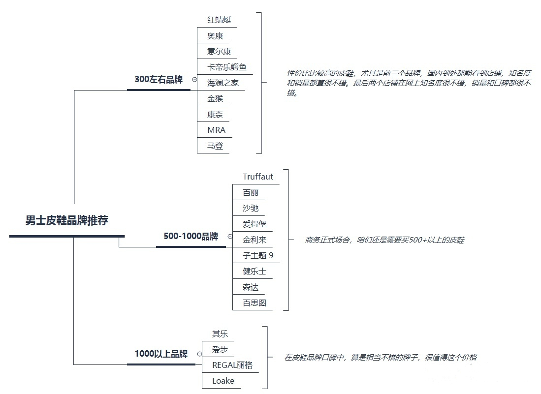 - 500-1000内皮鞋:在材质和工艺上做了升级,集中在中国广州地区,上脚感觉比较好,比较推荐的皮鞋价格区间。