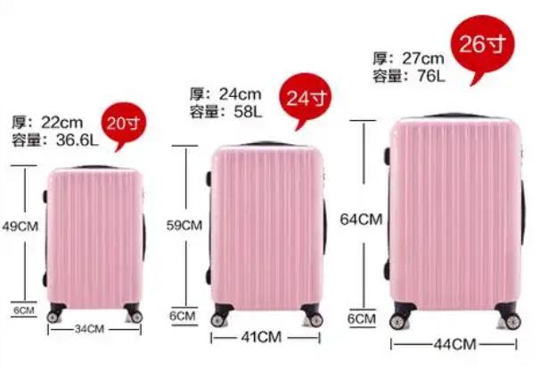 对于24寸拉杆箱多大,24寸拉杆箱是指长宽高三边之和加起来不超过135cm,最常见的尺寸是42cm*68cm*26cm,可以装下8套左右的衣服和洗漱用品,三双左右的鞋,适合一个人出行7—12天或者两个人出行3—7天。这个尺寸的箱子非常实用,正常的出行都可以选择这个尺寸,如果旅游有...