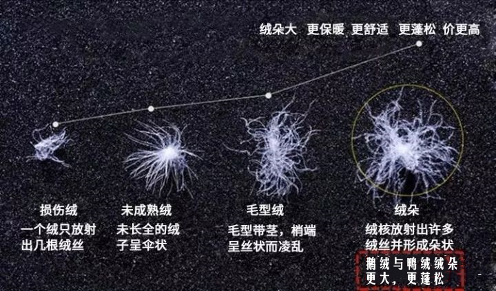 顾名思义,羽绒服,里面的填充物当然是羽绒,羽绒指的是最接近羽禽体表,保暖性最好,最轻柔的那部分角质纤维。 而羽绒又细分为:白鹅绒、灰鹅绒、白鸭绒和灰鸭绒。 它们之间的区别有两点: 第一:颜色。白色可广泛用于浅色的面料,不透色,但是对于保暖性和舒适度来说,颜色上的差别并没有多大的影...