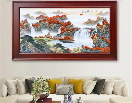 在家里客厅挂画,成为了人们彰显文化氛围的一种方式,也成为了家居装修的一处亮点。但想要在客厅背景墙上挂幅艺术画,虽说是最 简单的装饰,选对了,却能突出客厅主人的品味,营造出想要的艺术氛围。 1、山水瓷板画 在客厅的沙发背景墙挂上山水画,整个空间的档次立马得以凸显。特别是气势磅礴的山...