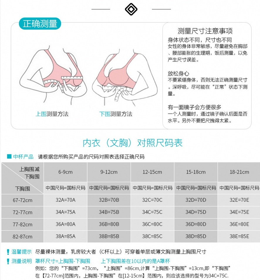 女生们选择文胸最终要的就是“量体裁衣”根据正确的文胸尺码对照表选择合适的文胸才能穿的性感、舒服。选择文胸尤其是网购文胸,我们除了看文胸的款式颜色外,更重要的就是看文胸的尺码是否合身,合身的文胸不仅穿着舒服,穿在身上的性感魅力一点也不逊于款式花哨的文胸。 今天,为您详解文胸尺码对照...